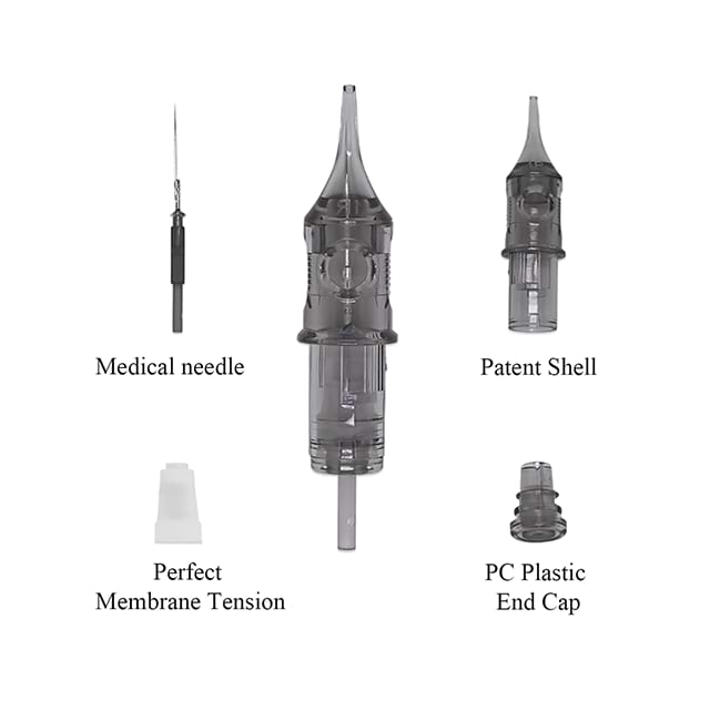 Được xử lý nhiệt đến độ cứng 50 HRC, kim thép không gỉ 316 duy trì hình dạng dưới áp suất 1,5N. Rất quan trọng đối với những tác phẩm đậm nét trên da dày (ví dụ như bắp tay) hoặc những đường nét mỏng manh trên da mặt.