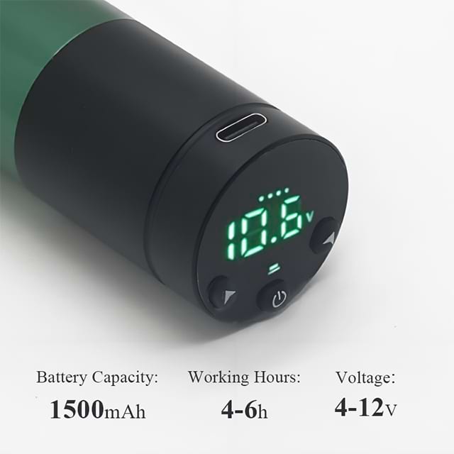 Các Máy xăm không dây OEM sử dụng chuyên nghiệp Hợp nhất hiệu suất cấp công nghiệp với thương hiệu tùy biến, có Động cơ DC không chổi than (Tối đa 10.000 vòng / phút) và một Pin lithium-ion 1800mAh Điều đó cung cấp hơn 5 giờ sử dụng liên tục, đủ cho 3 phiên tay áo đầy đủ.